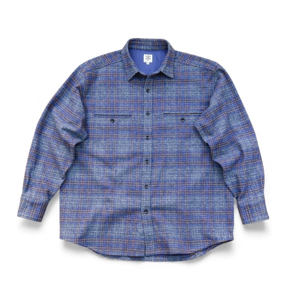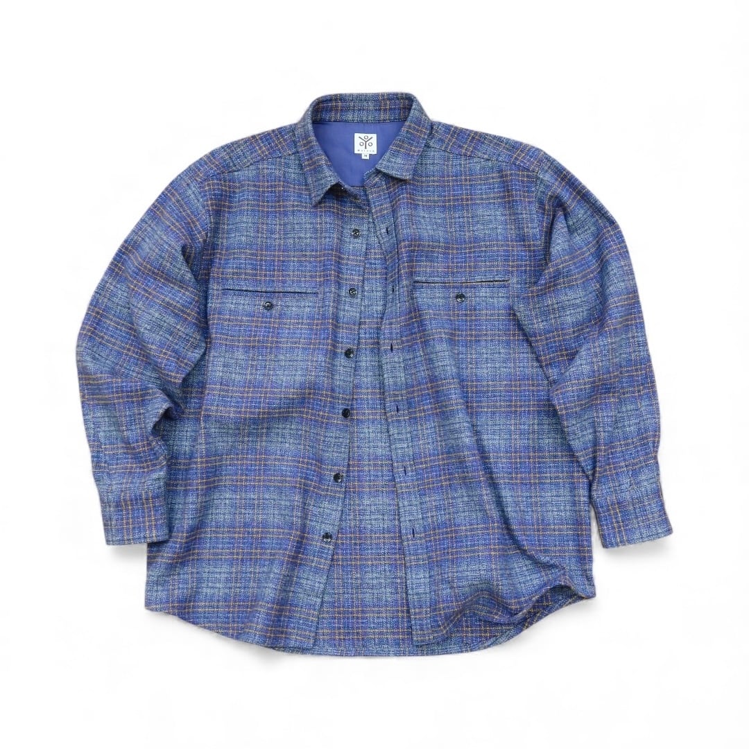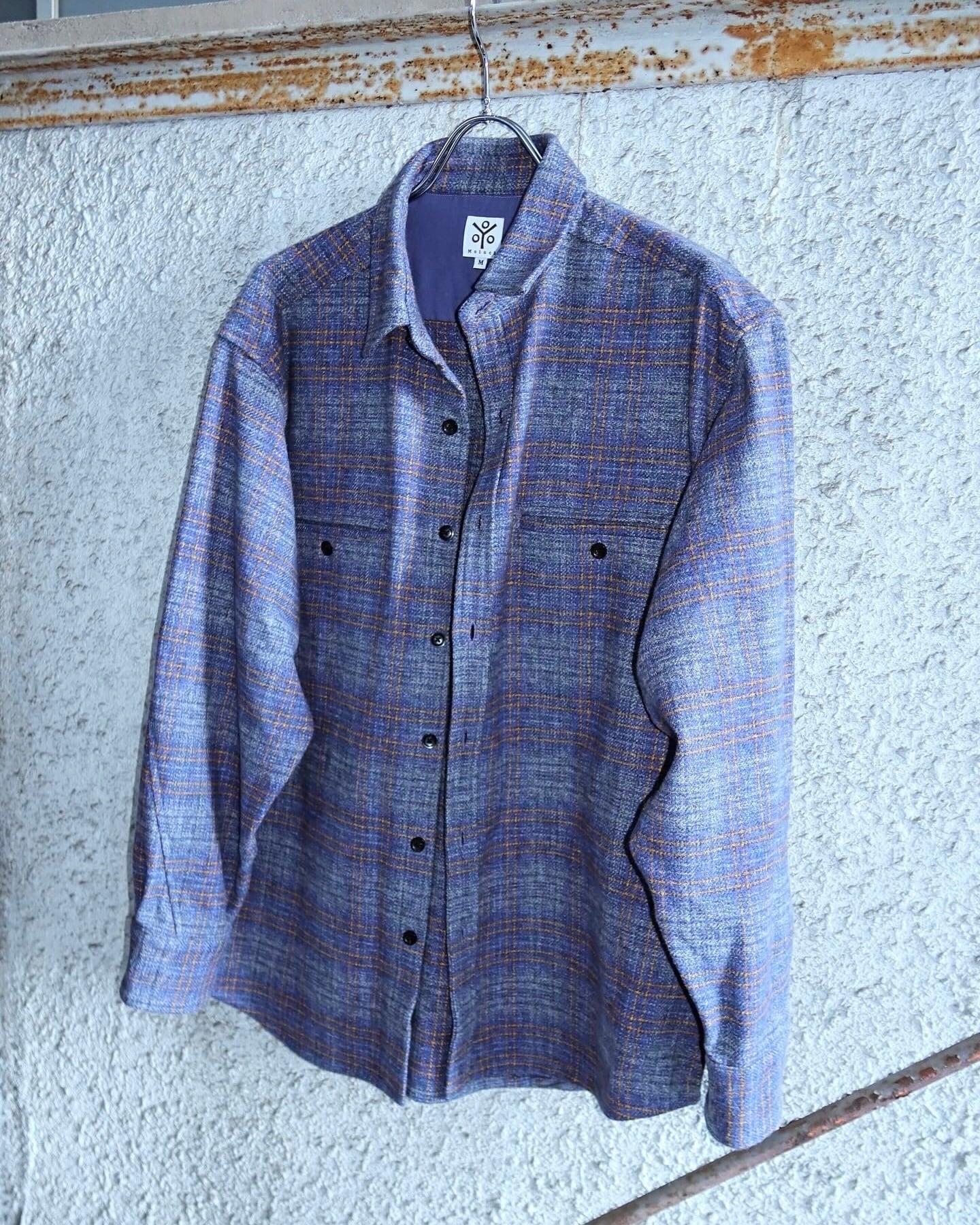 ツィードのように厚手で暖かみのあるコットンネル生地を使用したチェックシャツ。袖に立体裁断とダーツを加える事で着用しやすい機能と不思議な見た目の印象を与えています。