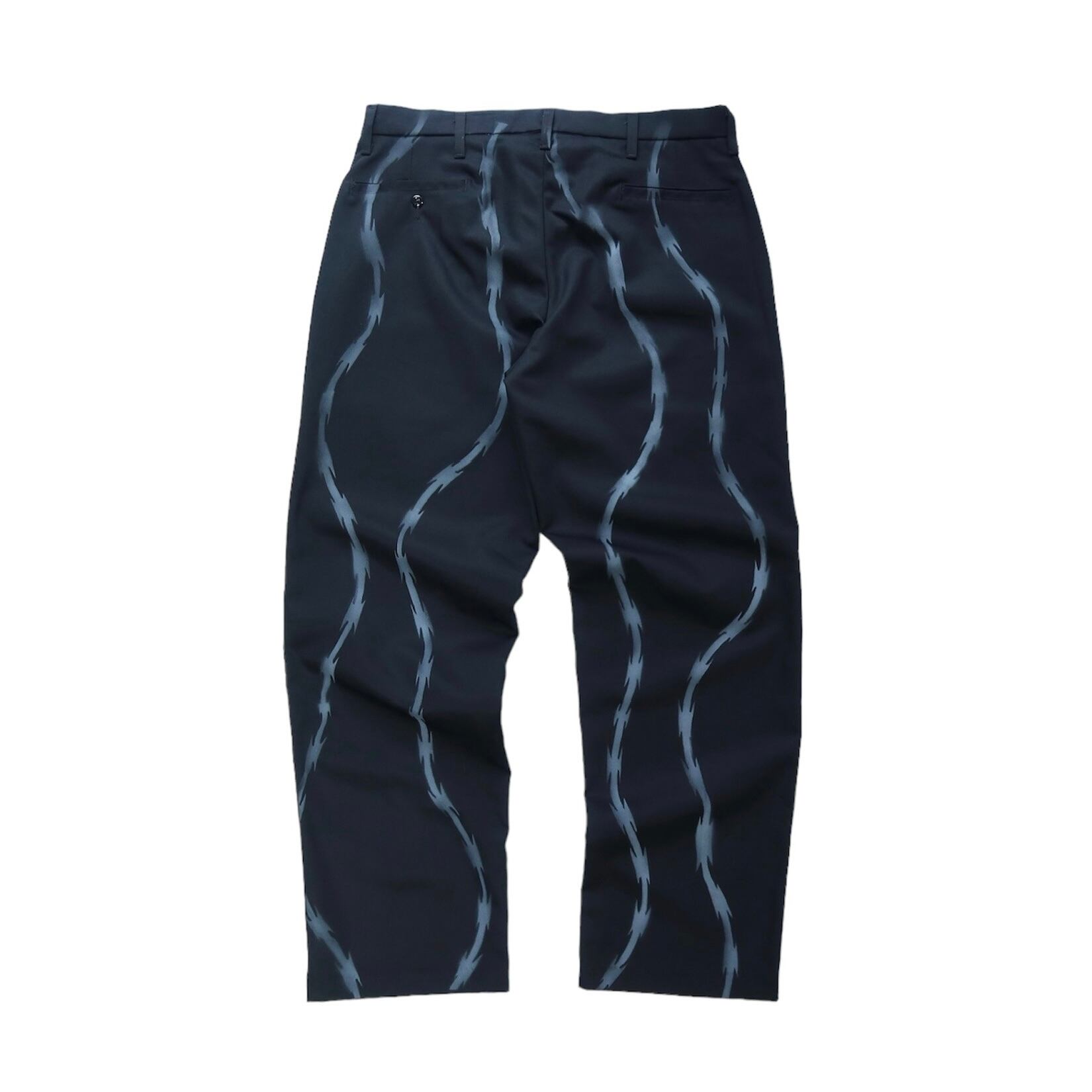 刑務所のセキュリティフェンスに張り巡らされた、有刺鉄線をイメージした柄をオリジナルで作成し、特大版を製作。1点1点手作業のステンシル加工にて表現しています。ポリ混で型崩れも抑えられる7.5ozのRED KAPボディを使用しています。